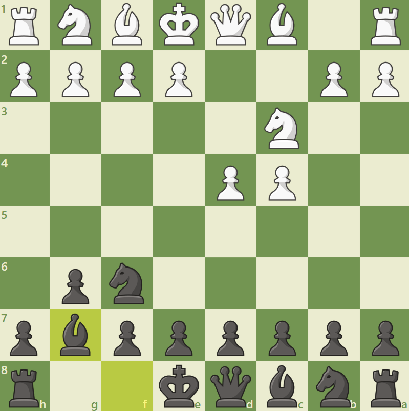 Now let’s switch to a defensive option for Black. The King’s Indian Defense (KID) is a great choice if you want to meet 1. d4 with something dynamic and aggressive. It starts with: