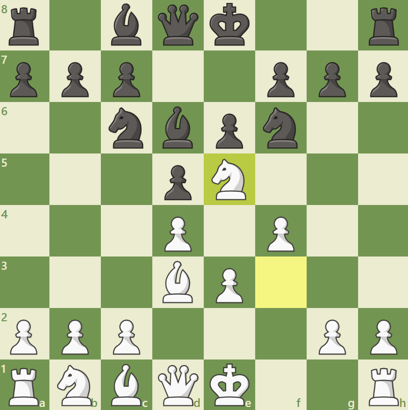 At a beginner level, Black will often trade off the e5 knight early on, sometimes hanging a pawn fork in the process if they take the wrong way.